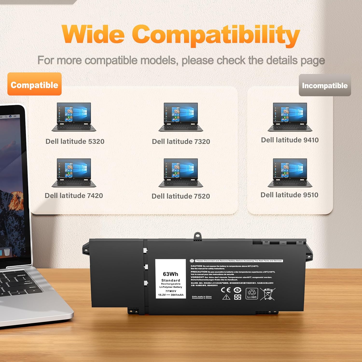 Q1: Is this battery compatible with Dell Latitude 5320 and 7420 models?